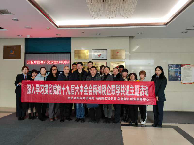 2021年12月1日上午,新疆維吾爾自治區(qū)稅務局貨物和勞務稅處楊建新副處長一行7人,烏魯木齊高新技術產(chǎn)業(yè)開發(fā)區(qū)(新市區(qū))稅務局貨物和勞務稅科楊新穎一行4人,蘇州路稅務所王鵬、阿力木副所長2人就“深入學習貫徹黨的十九屆六中全會精神稅企聯(lián)學共進主題活動”蒞臨新疆眾維股份E工廠·眾創(chuàng)空間進行參觀考察,新疆眾維股份運營總監(jiān)曹驥接待并陪同參觀。